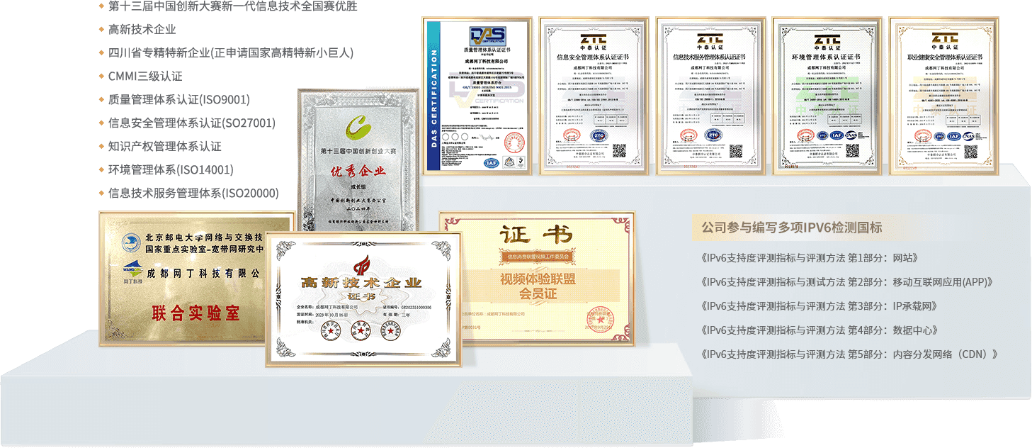 公司是中國寬帶質(zhì)量聯(lián)盟和國家視頻體驗聯(lián)盟會員,與北京郵電大學成立了"國家網(wǎng)絡(luò)質(zhì)量分析聯(lián)合實驗室",與工信部信通院、三大運營商研究院、各行業(yè)研究院、騰訊、阿里、華為、中興、等建立長期合作伙伴關(guān)系。擁有50+項國家發(fā)明或?qū)嵱眯滦图夹g(shù)專利及軟著,經(jīng)過多年自主研發(fā),形成了從運營商到企業(yè)網(wǎng)以及個人家庭網(wǎng)絡(luò)的智能網(wǎng)絡(luò)運維產(chǎn)品系列,為政府、運營商、金融、能源、交通、制造、互聯(lián)網(wǎng)等數(shù)十個行業(yè)客戶提供先進的下一代網(wǎng)絡(luò)質(zhì)量運維精細化管理解決方案。
